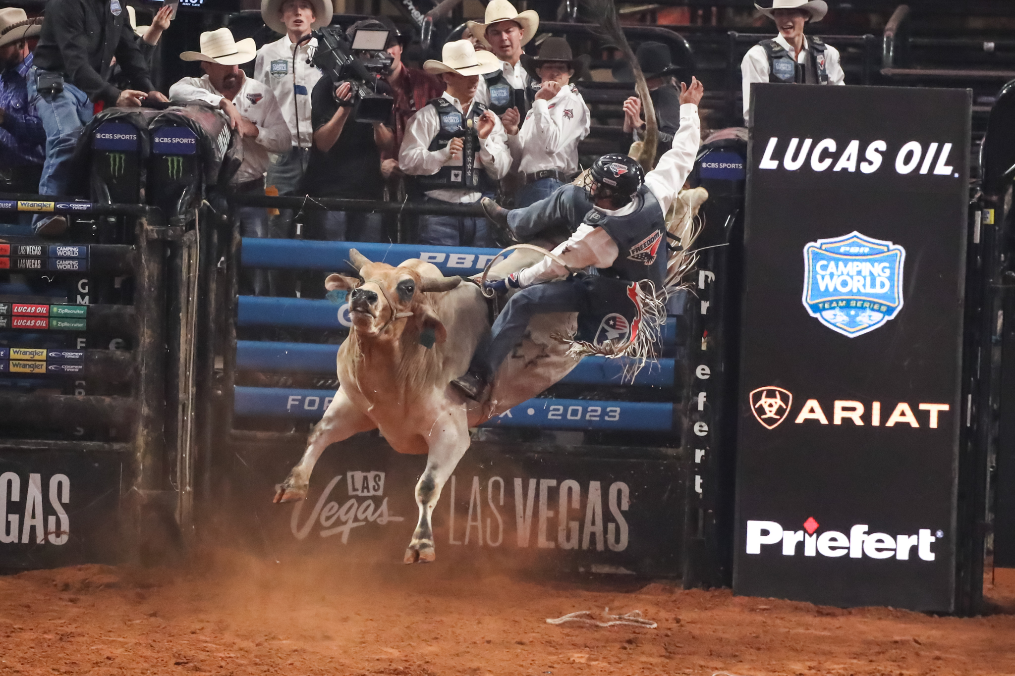 FORT WORTH, Texas – The hometown Texas Rattlers continued to ride lights out Saturday evening as PBR (Professional Bull Riders) Camping World Team Series competition continued in Fort Worth, Texas. The Rattlers trounced their in-state rivals and league No. 1 Austin Gamblers by two ride scores to improve to a perfect 2-0 at their Rattler Days, presented by Ariat, homestand.