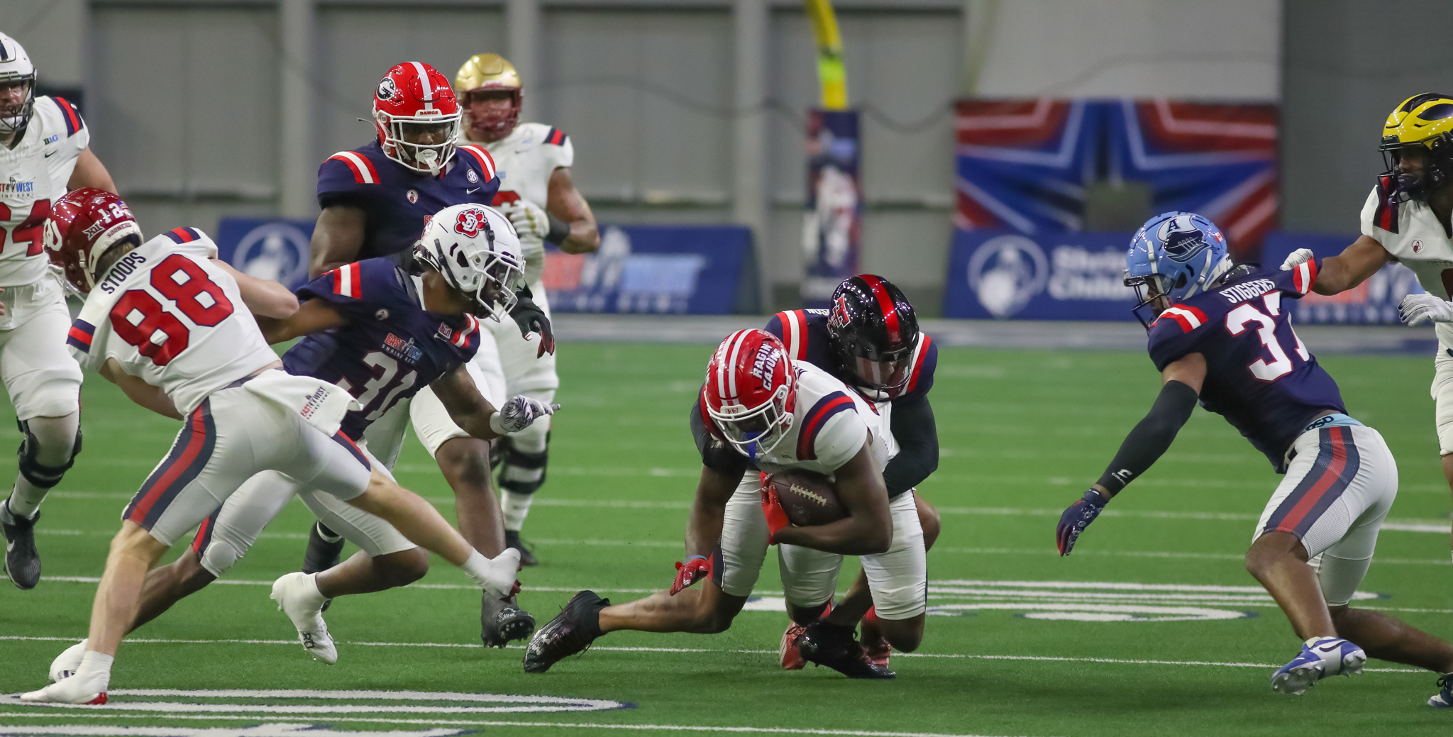 This year the Shrine Bowl came to the Ford Center at The Star in Frisco, Texas. Our very own Ketih Higgs was there to capture all of the action as the the West Team took victory over The East 26-11.